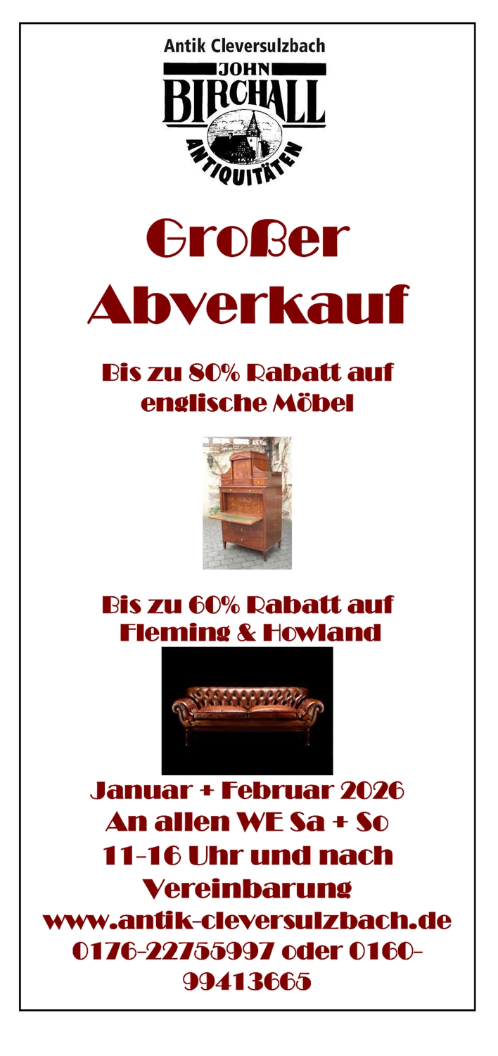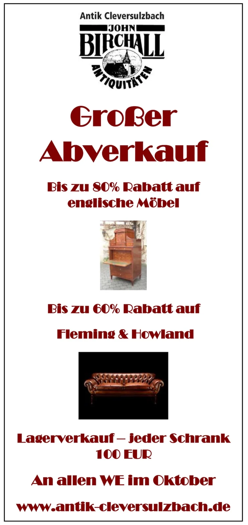 nach 50 Jahren erfolgreichen Handels schliessen wir Antik Cleversulzbach.